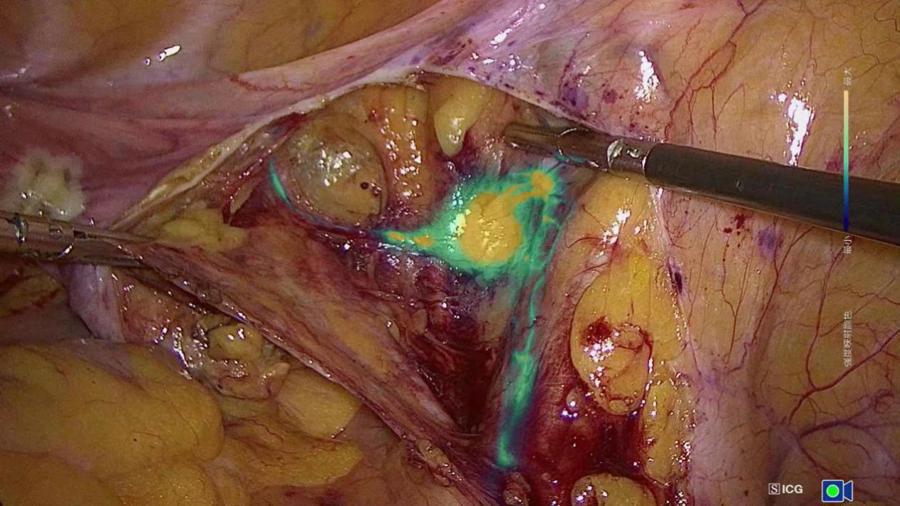 荧光腹腔镜强导航模式下吲哚菁绿显影的淋巴结