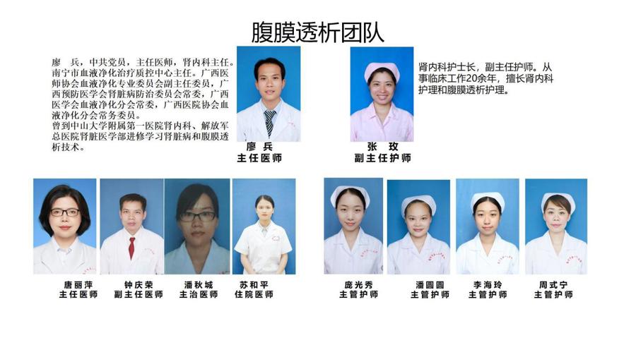 肾内科腹膜透析中心是广西较早开展腹膜透析的单位,是南宁市率先开展腹膜透析技术单位,南宁市居家自动化腹膜透析治疗体系建设示范中心单位,西南腹膜透析诊治联盟理事单位,南宁市首家成立规范腹膜透析专病门诊。2019年开展自动化腹膜透析治疗技术,是通过机器辅助完成透析的一种先进肾脏替代治疗手段,让尿毒症患者更好回归社会,提高患者生存率、生活质量。2023年推行互联网远程监控+居家自动化腹膜透析治疗模式,使得患者获得智能化、精细化、专业化的专科疾病全程管理,让尿毒症患者有能更合适的透析替代治疗选择。