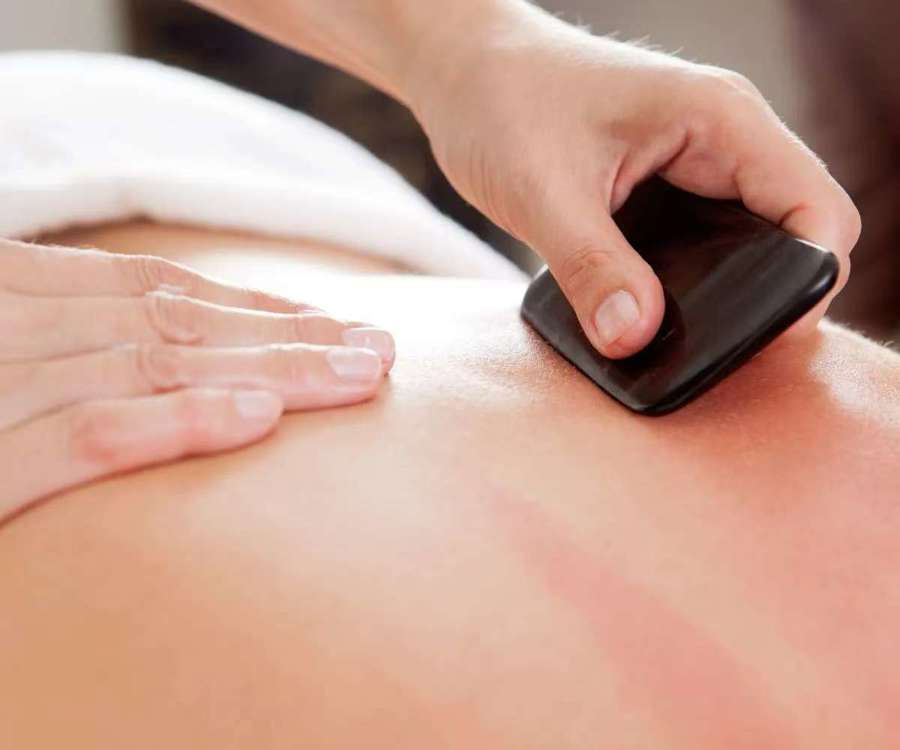 刮痧是应用边缘钝滑的器具,如牛角刮板、瓷匙等物,在患者体表一定部位反复刮动,使局部皮下出现瘀斑的一种疗法。此法可疏通理,使脏腑秽浊之气通达于外,促使周身气血流,逐邪外出,达到治疗的目的。适用于夏秋之间的各种急性疾患,如中暑、霍乱、痢疾等病证,以及感冒、胸闷、头痛等。