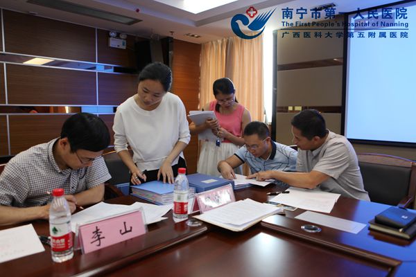 6月8日上午,南宁市第三周期医学重点学科现场评估专家组一行8人由南宁市卫生计生委王小刚副主任带队,莅临我院对神经外科、医学检验科新申报的医学重点学科进行现场评估。 评估会场设在我院1号楼20层学术厅。我院吴曙粤副院长及相关科室负责人参加现场评估会议,会议由科教部周全部长主持。