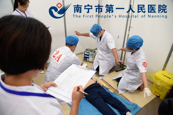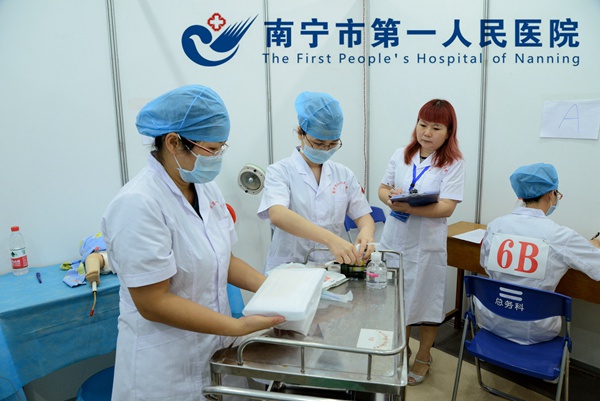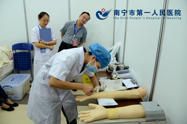 为不断提高临床操作技能、临床教学能力,切实提高临床师资技能操作水平,不断改进实践教学质量,培养出更多高技能、高素质的临床医师,为学校的全程教学开展作出贡献。在学校教育评价与教师发展中心的指导及院领导的正确领导下,经过4个月的精心组织筹备,由广西医科大学主办、我院承办的“2015年广西医科大学第二届临床医师操作技能大赛”于7月11日在我院成功举办。来自广西医科大学11家直属,非直属医院的11支参赛队参加比赛。