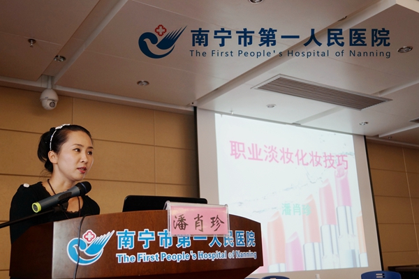 培训分为两个部分进行,潘肖珍老师从职业形象的重要性谈起,给大家上了一堂理论课。通过一组组图片对比展示,让大家充分认识到淡妆上岗的重要性。她强调,医务人员淡妆上岗即是职业的要求,更是本人自尊自爱、热爱生活的直接体现。