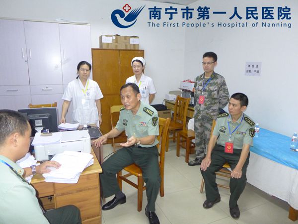 8月14日下午,南宁警备区领导亲自来到我院体检科巡视检查,并与应征青年和青秀区武装部领导亲切交谈。检查组一行对我院的征兵体检工作予以充分肯定。