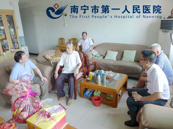 8月18日,谢炎副院长,离退休管理科、党办等一行5人,携带生日慰问品登门给我院93岁高龄的退休干部孙永斌同志祝寿。