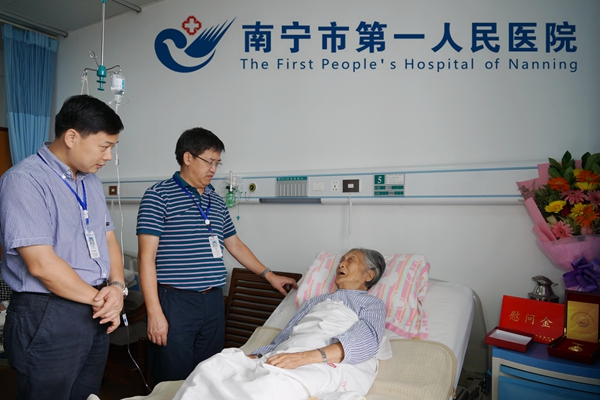 为纪念中国人民抗日战争暨世界反法西斯战争胜利70周年, 9月1日上午,韦金儒院长、黎君君书记、谢焱副院长一行登门拜访,亲切看望慰问了我院两位抗战老兵王玉舟同志和成宇同志,共忆难忘的烽火岁月,共话革命精神的传承,为他们送去党和政府的关怀。