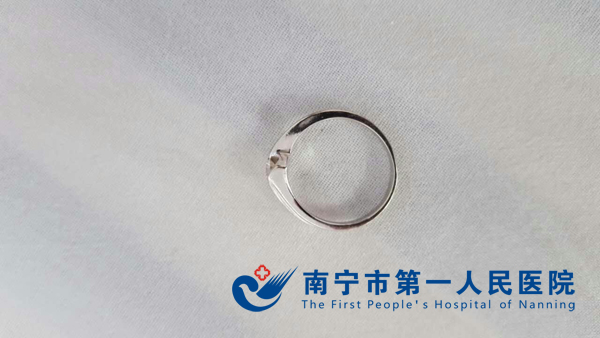 2015年10月18日晚我科值班医师值班时收到急诊科电话,说有人误吞异物须住院治疗,值班医师当时做好了急诊手术的准备。大约经过数小时后有一女性患者在家人陪同下来到我科,经过详细病史询问,得知患者误吞男友的求婚戒指一枚,目前感觉有吞咽异物感,并有少许疼痛,考虑不排除为食管异物,后予其办理住院手续,拟住院进一步处理。入院后予患者行相关检查,检查后发现误吞的异物已进入肠道,经科内讨论决定予患者促排泄药,将异物排出。经予促排泄药后患者于2015年10月21日异物随粪便排出,目前患者已无大碍,各项生命征平稳。(耳鼻咽喉头颈外科李趣)