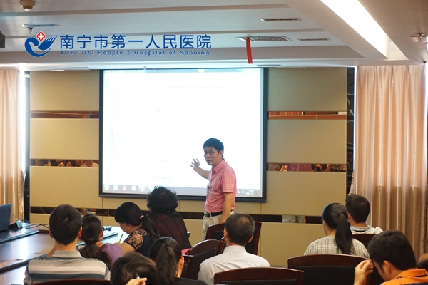 2015年10月20日下午,南宁市第一人民医院在门诊综合楼20楼学术厅开展2015年临床路径管理系统操作培训。全院28个开展临床路径科室的个案管理员(医生、护士)、质控员等约60人参加了培训。培训会议由医务部黄岳副部长主持,由信息科覃维航工程师主讲。