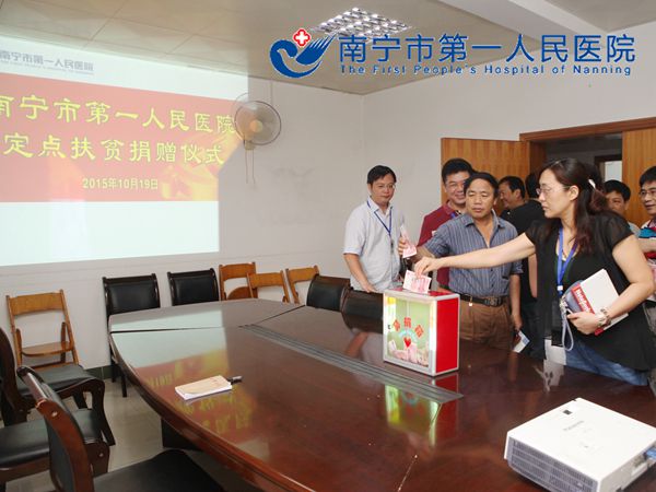 自2014年起,国务院将每年的10月17日设立为“扶贫日”。为贯彻落实南宁市扶贫办转发自治区扶贫办《关于组织定点帮扶单位开展扶贫捐赠活动的通知》和市卫计委的通知精神,10月19日,南宁市第一人民医院开展定点扶贫捐款活动,仅仅半天的时间便收到来自全院各职能、临床、医技科室捐助款项三万两千多元。