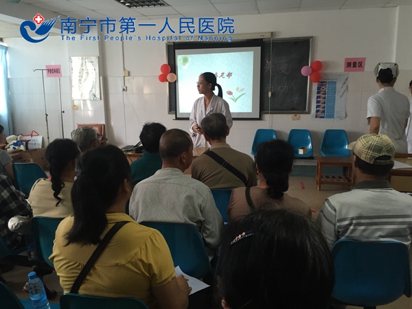2015年10月21日下午,又是一年一度的“重阳节”,南宁市第一人民医院内分泌科成功举办了一场别开生面的健康教育活动。参加本次健康教育活动的总人数多达60余人,有我院内分泌科医护人员、糖尿病病友及家属,还特别邀请了我院营养科专科医护人员的参与。