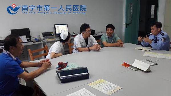为了更好的维护医疗场所秩序,保护医患双方利益,10月22日上午,南宁市第一人民医院投诉办潘松球副主任汇同新城派出所李世毅副所长等相关人员,对胸心血管外科、产科进行警医联动,排查医患矛盾,维护医院安全。