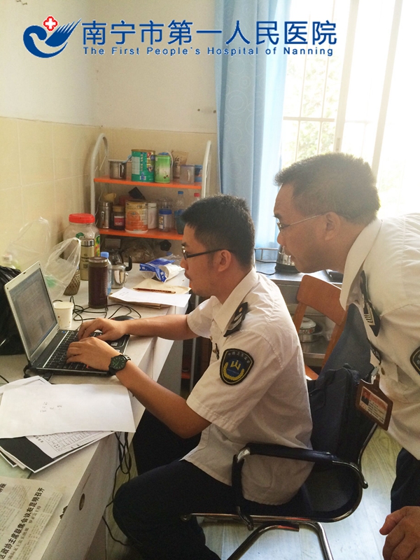 为进一步加强放射卫生监督管理,强化医疗机构放射诊疗防护意识,切实维护患者和医务人员的健康,2015年10月22日上午,南宁市卫生监督所刘长政科长一行3人对市一医院放射卫生情况进行现场督查。医务部部长谢逢春、放射科主任李耀波陪同检查。
