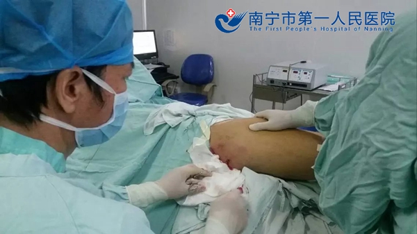 10月31日上午,黄宗贵副院长到埌东分院进行会诊手术,行双侧经皮小切口髋胫束松解术。无缝地配合、严密地操作、精准地分离,短短30分钟后,分院首例双侧弹响髋经皮极小切口髂胫束解术手术圆满成功。术后,病人恢复良好,病人及家属十分满意。
