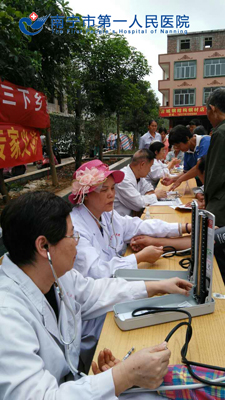 2015年10月29日,南宁市第一人民医院离退休管理科组织医院离退休老专家一行9人,前往上林县澄泰乡参加由市老科协组织的“三下乡”义诊活动,医院退休专家内科主任医师朱栋才、外科主任医师陈达琨、妇产科副主任医师胡桂桓、中医副主任医师张美娥、副主任护师李文、主管护师杜春梅以及医院老医疗卫生分会余荣民等参加了当天的义诊活动。义诊活动受到当地农民的热烈欢迎,活动现场人头攒动,农民们纷纷排队向老专家们寻医问药,活动历时3个多小时,接受咨询诊疗人员总计400多人。
