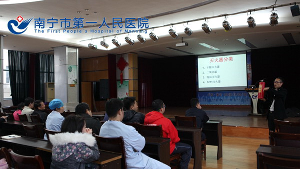 为落实上级主管部门有关消防安全的通知精神及医院的消防工作安排,2015年12月29日下午,南宁市第一人民医院在礼堂召开科室安全员(义务消防员)的年度消防安全培训会。来自全院各科室义务消防员及重点岗位人员共90余人参加培训。此次培训邀请了消防专业人员进行消防知识授课,通过火灾案例讲解医院火灾的特点及发生原因的剖析,医院发生火灾如何疏散、逃生、自救技能,并就消防火灾的基本常识、消防器材的正确使用以及在日常生活中防火方面需注意的事项等进行了详细的讲解。通过本次培训活动,提高了全院义务消防员对消防安全工作的认识,增强了科室安全员(义务消防员)队伍的消防技能。(保卫科-陈天念)