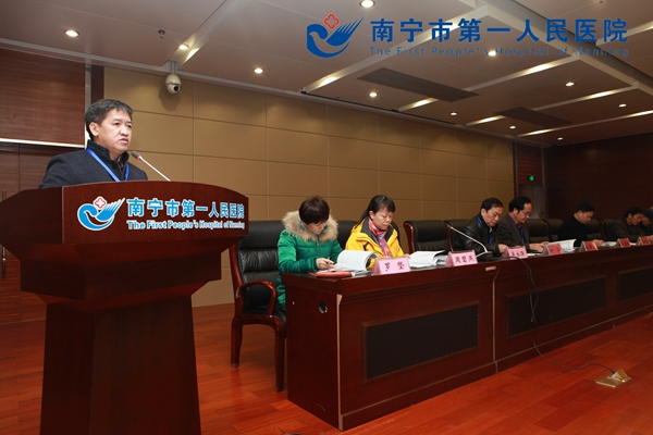 我院第八届职代会第一次会议暨第十一届工会代表大会第二次全体代表会议,于2016年1月15日在医院多功能厅召开。会议由工会主席卓永强同志主持,韦金儒院长、黎君君书记等院领导及职工代表共150名参加了此次会议。与会代表认真听取和审议并通过了《南宁市第一人民医院十三五发展规划》、《2015年工作总结及2016年工作计划》等四个报告。圆满完成了本次大会的任务。