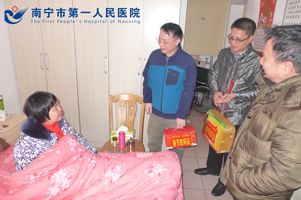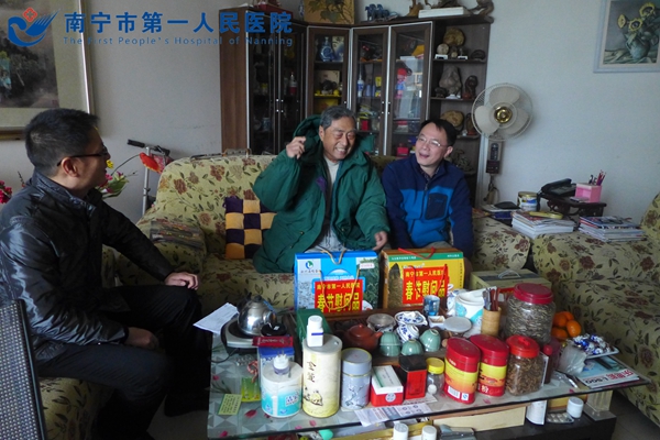 2016年1月20至25日,韦金儒院长、黎君君书记、谢焱副院长等院领导带领离退休管理科、党办等科室同志携带慰问金和慰问品,走访慰问了我院离退休老干部,向老干部介绍了我院今年以来的工作开展情况,认真听取了离休老干部对医院发展工作的意见和建议。院领导还详细询问他们的生活和健康状况,并表示老干部为我们的医院建设付出了毕生心血,虽然已经离退休多年,但是他们从前很多好的工作经验、优良的传统与作风对于我们今天发扬传统、务实为民具有重要的借鉴意义,是我们宝贵的财富,因此一定要安排好退休老干部的晚年生活,让他们健康长寿,更好地发挥他们的余热。