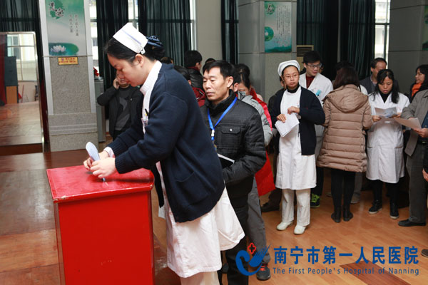 考核主要采取实绩公示、述职述廉、民主评议、民主测评等方式进行,医院韦金儒院长代表班子做述职述廉报告和年度选人用人工作报告,市管干部的述职述廉报告以书面形式进行。述职述廉结束后,参会人员现场填写并提交相关测评表。市丁伟副主任强调,当前正值岁末年初,各项工作需要推进和落实的任务比较繁重,参与民主测评和民主评议是党组织赋予同志们的一项民主权利。希望大家要以对党和人民负责、对事业负责、对干部负责的态度,坚持实事求是,正确行使民主权利,公道正派、客观公正地评价干部。每位领导干部也要把接受考察作为改进工作的一次良好机会,自觉接受组织和群众的监督和评议,把这次考察作为改进工作的有利契机、推动工作的强大动力,牢固树立科学发展观和正确政绩观,弘扬直面矛盾、破解难题的务实作风和克己奉公、无私奉献的敬业精神,充分发挥自身聪明才智,团结一致,凝心聚力,为我市卫生计生事业“十三五”规划开好局、推进新一轮创业创新作出新的贡献。(人事科骆玢如)