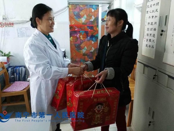 在医院领导和护理部大力支持帮助下,医院于2015年4月15日成立陪护员管理办公室,制定了陪护员管理制度,规范管理全院陪护人员。陪护员经过体检,培训,考核合格后方可上岗工作。办公室工作人员及时与患者及家属沟通交流,陪护员尽心尽力陪护照顾患者,使患者及家属放心满意。办公室成立以来,得到了临床科室、患者及家属的一致好评。新年到来之际,医院给每位陪护员送上旺旺大礼包,虽是小小的礼品,却包涵了医院领导对陪护员的殷切关怀和新年的祝福,祝大家新年快乐!万事如意!阖家幸福!(陪护办:陈素梅)