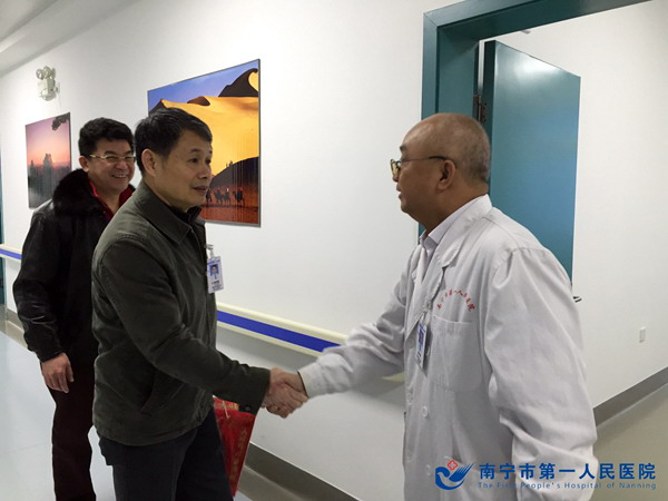 2016春节,南宁市第一人民医院工会在院党委的领导下,积极开展慰问送温暖活动,带上新春的祝福和组织的关怀,工会主席卓永强同志一行对医院在职医护及后勤人员进行走访和慰问,送去新年物资及慰问金,让他们在寒冷的冬日感受到医院职工之家的温暖。