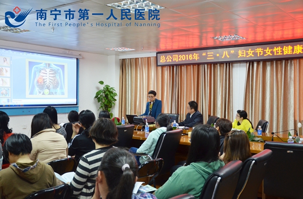 为庆祝“三·八国际妇女节”, 关爱妇女朋友身心健康,进一步提高女性自我保健意识,倡导科学、文明、健康的生活方式。3月7日下午,埌东分院体检科副护士长韦秋燕、李俊和陈宝峰医生等一行5人到广西中路交通建设总公司,为30多名女职工传授健康和美容保健知识。