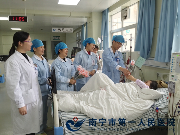 一支花,是满满的温馨祝福;一句温心话,是暖暖的倾情关怀。肾友们纷纷表示很开心,很意外,高兴得用唱歌来表达她们的心情。一支小小的花送出的不仅是我们医护人员对肾友节日的美好祝愿,更是医院对广大女性同胞的关心。