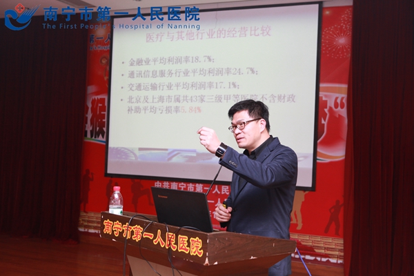 3月4日,南宁市第一人民医院举办第一季度中层干部培训班。本次培训班特别邀请台湾医务管理硕士、四川大学医院MBA客座教授、四川大学华西医院经营管理顾问李维进教授前来授课。院领导班子及全院中层参加培训。