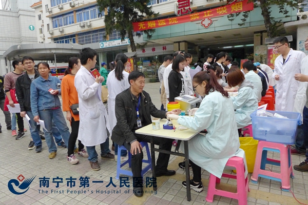 为积极参与2016年驻邕医疗机构“医务人员献血月”活动,保障全市临床用血需求,进一步树立医务人员 “救死扶伤”的良好形象。3月9日上午,我院在急诊科门前小广场组织医务人员开展无偿献血活动。