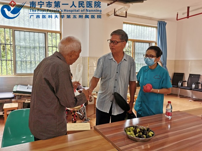 2.大塘养老服务中心护士为老人送上水果。