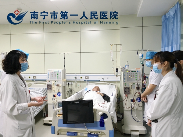 4月20号上午,南宁市第一人民医院血液净化室黎琦副主任医师顺利为一名血液透析患者应用枸橼酸钠局部抗凝治疗。这是我院血液净化室成立以来,首例在血液净化中应用局部枸橼酸钠抗凝。