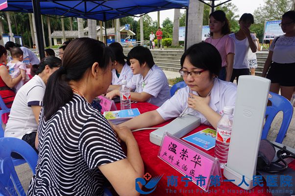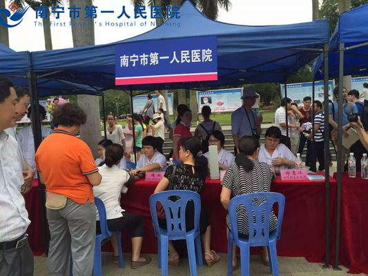 2016年5月8日是第23个“世界地贫日”,同时也是“母亲节”。根据自治区卫计委工作部署,2016年5月9日,我院在南宁市卫计委的统一组织下,由医务部黄彬副部长带队,组织了血液肿瘤科陆翔主任医师、妇科郑惠冰副主任医师、产科温荣华主治医师、儿科陆玉娇医师4名义诊专家及20名工作人员,参加在南湖公园三月三欢歌广场开展的义诊和健康教育宣传活动。
