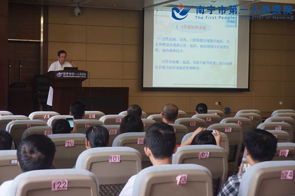 今年为手足口病高发年,目前南宁市整体手足口病疫情防控形势较为严峻,为进一步加强全院的手足口病医疗救治工作,提高医疗卫生人员手足口病防控意识,5月16日下午,医务部组织开展了全院手足口病防治知识培训班,约有300余人参加了培训。