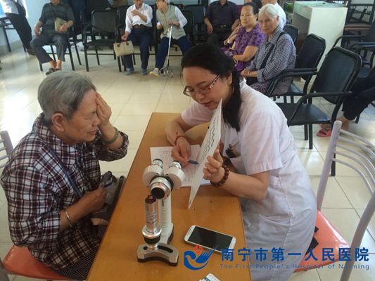 5月20日起,南宁市青秀区残联与我院眼科在新竹社区、大板三区社区、建政南湖社区开展了白内障免费筛查活动。许多闻讯前来的老年朋友们在社区接受了眼科医生们的检查。我院的眼科医生们对每一位前来检查的居民都进行了登记和详细的检查,此次筛查活动人数达到30人,其中可以进行白内障手术的大约10位居民,眼科医生将帮助他们申请参加2016年的光明工程。