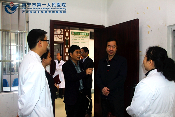 3月13日,南宁市卫生计生委主任谢宗务率体改科、基层指导科负责人一行4人,到南宁市第一人民医院紧密型医联体单位兴宁区三塘镇卫生院进行医联体建设工作调研。市一医院院长助理黄岳、三塘镇卫生院院长韦冬梅、副院长冯以真等陪同调研。调研组深入到医联体专家门诊、临床科室进行了解,查看由市一医院投入建设的停车场以及业务用房,看望和慰问了市一医院派驻专家,了解专家们的工作生活情况。