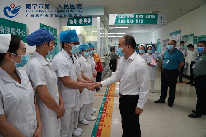 五月繁花似锦,馨香四溢飘洒,夏日已悄然漫步走来,在五月这个似水的季节里迎来了5.12国际护士节。5月11日上午,南宁市卫生健康委员会副主任唐驰一行来到我院,向驰援武汉以及奋战在抗疫一线的白衣天使们致以节日的问候、献上真诚的祝福与赞美。