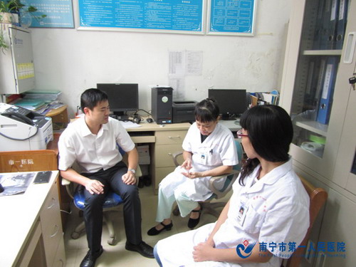 10月23日上午,马国添副院长来到埌东分院南湖社区卫生服务中心开展调研工作。在调研中,马副院长对社区工作提出许多建设性的指导意见,并对将南湖社区建设成为慢性病康复治疗示范社区,把如何有效解决辖区居民卫生保健的依从性、如何提高社区工作人员的知识水平、工作能力、工作质量和社区工作人员的积极性等问题作了明确指示,还要求社区医护人员将居民当亲人,全心全意为居民提供更优质的社区卫生服务。(埌东分院黄利敏)