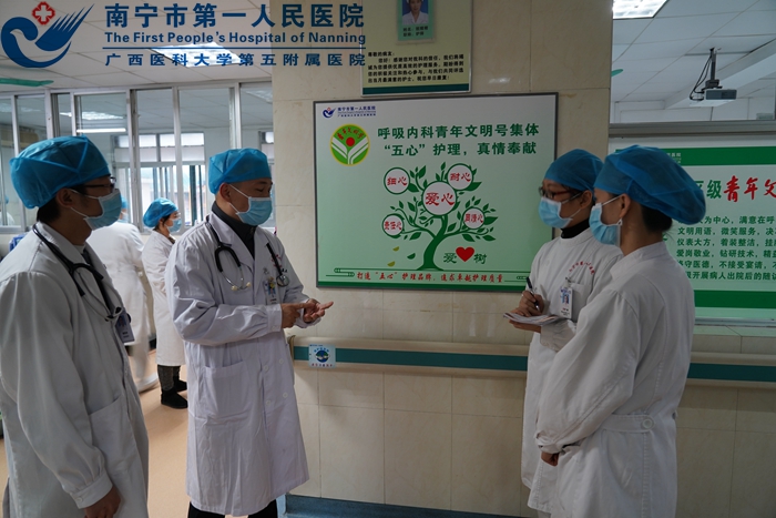 上个月,南宁市第一人民医院呼吸内科青年文明号刚通过自治区级“青年文明号”复审。危难时刻,作为医院第一个收治疑似病例的观察科室,呼吸内科青号集体29名医务工作者,充分发挥团员青年先锋模范作用,以实际行动践行着“敬佑生命、救死扶伤、甘于奉献、大爱无疆”的职业精神。