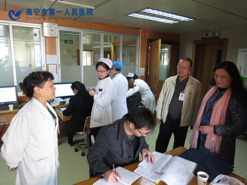 2014年12月23日下午,由市卫生计生委妇幼健康服务科科长钟喜红等组成的南宁市卫生计生委专家组,到埌东分院进行妇幼健康服务项目年终检查。分院颜冰院长、刘姿副院长、唐曼雪副院长、总院医务部副主任黄颀以及相关科室负责人陪同检查。专家组分别到产科门诊、病房、预防保健科等科室对出生医学证明管理、产前筛查和新生儿疾病筛查补助项目、听力筛查补助项目、地贫防控项目、增补叶酸预防神经管缺陷项目、预防艾滋病、梅毒及乙肝母婴传播、免费婚前医学检查及产科质量等工作进行了详细认真地检查。