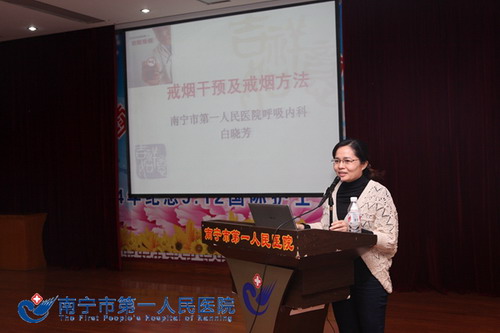 南宁市第一人民医院作为全区三家控烟门诊示范医院之一,营造文明、健康、和谐的医疗工作环境,大力推进医院无烟文化建设是义不容辞的责任和义务。为更好地让广大医务人员了解吸烟的危害及干预措施,12月1日下午,市一医院开展了主题为“戒烟干预及戒烟方法”的培训讲座。讲座由呼吸内科白晓芳医生主讲,全院职工四百余人参加。白医生首先介绍了我国吸烟的严峻现状及我国烟草流行导致的健康危害,其次讲解了烟草烟雾的分类和定义,最后,通过讲解戒烟的干预和戒烟方法,呼吁全院职工行动起来,远离香烟,健康生活每一天。(南宁市第一人民医院)