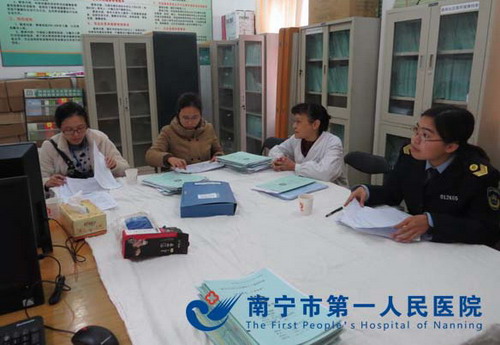 2015年1月8日,青秀区疾控中心公卫科科长李颖一行十人到埌东分院南湖社区卫生服务中心进行2014年青秀区基本公共卫生服务项目年终工作检查考核,此次检查考核主要针对居民健康档案管理、慢性病管理、预防接种等11个基本公卫服务项目。