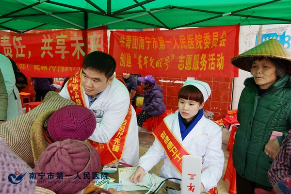 自南宁市第一人民医院团委开展创建“青年文明号”活动以来,医院党委高度重视“青年文明号”的创建工作。2月3日,市一医院团委积极响应号召,组织创建“青年文明号”集体的医务人员参加医院党委组织的“生态乡村——我们在行动”志愿服务活动。