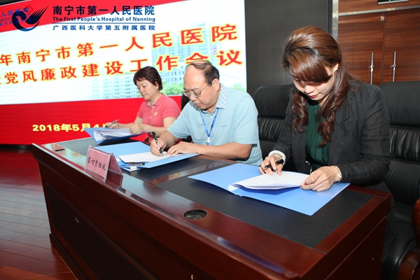 医院党委副书记、纪委书记刘津江同志首先传达区、市卫生计生委党风廉政建设工作相关会议精神,对医院党风廉政建设工作进行总结部署;陈波书记代表医院党委与部分支部书记代表签订《2018年党的工作责任书》,并传达了区、市卫生计生委党的建设工作有关会议精神,同时总结2017年医院党委党建工作情况,部署2018年党建工作。