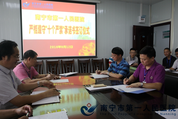 会上还举行了严格遵守“十个严禁”承诺书签订仪式,首先由党委书记黎君君代表医院党组织作出严格遵守“十个严禁”承诺,签订承诺书;其次党支部代表向医院党组织作出承诺并签订承诺书。同时通过医院OA系统把《通知》下发各科室、党支部,要求组织党员干部职工认真学习,落实文件工作要求。做到学习传达全覆盖、无死角,切实将“十个严禁”落到实处,纪检监察部门将继续盯住关键节点和重要问题,加大监督检查和执纪问责力度,把纪律和规矩挺在前面,进一步推动中央八项规定精神落实,在医院营造风清气正的医疗环境。(纪检办 杨媚、梁奕)